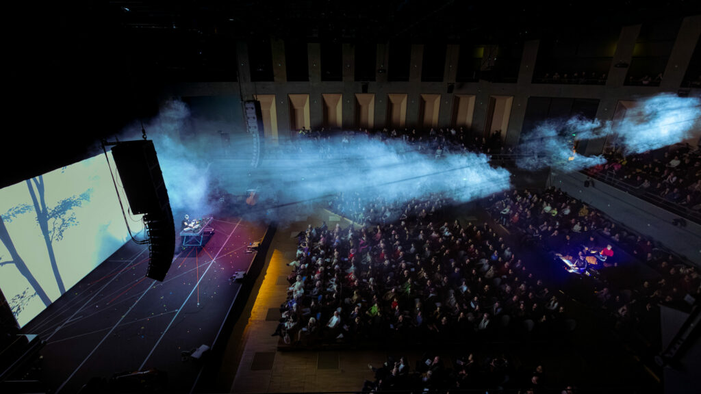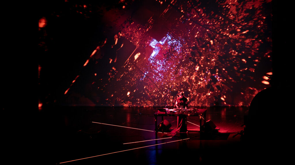“Distortion and noise textures from their modular synthesizers struck hard and, at times, overwhelmed (…) immersive visuals where nature pushes its way through. Then suddenly, ambient takes over (…) digital bursts restore the tension, before a return to noise, leading back into more atmospheric and highly epic soundscapes. A piece that sought to provoke reactions—and largely succeeded, judging by the long and resounding applause.”